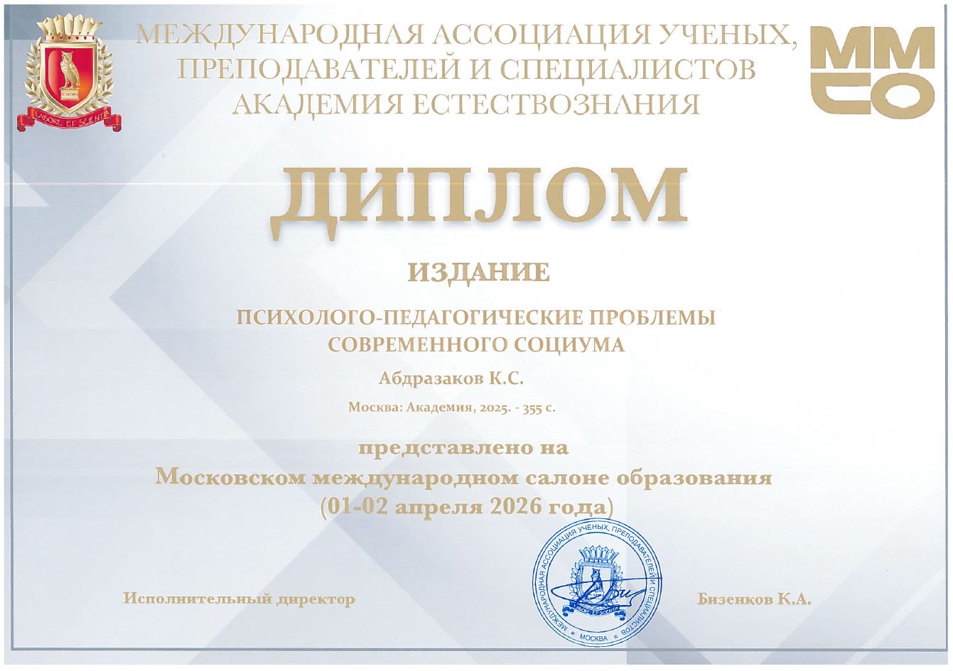 7. Диплом участника «Московского Международного Салона образования 2026» (1-2 апреля 2026, Москва)